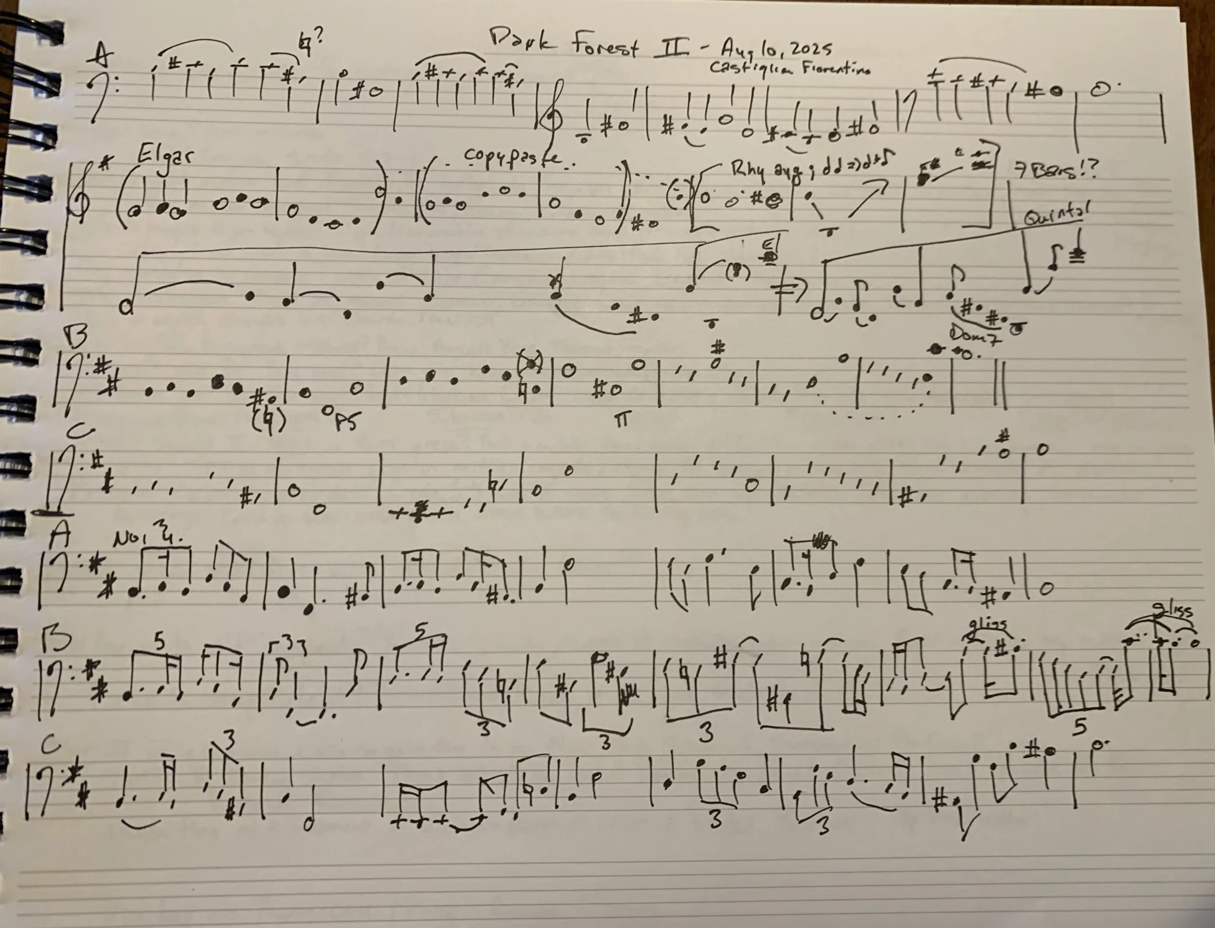 My intention is not to overthink the rhythmic stuff or the aggressive chords. And then to go back and formally study Gerard Grisey’s Vortex Temporum (YT, pretty good performance), making my first round of official edits at that point.