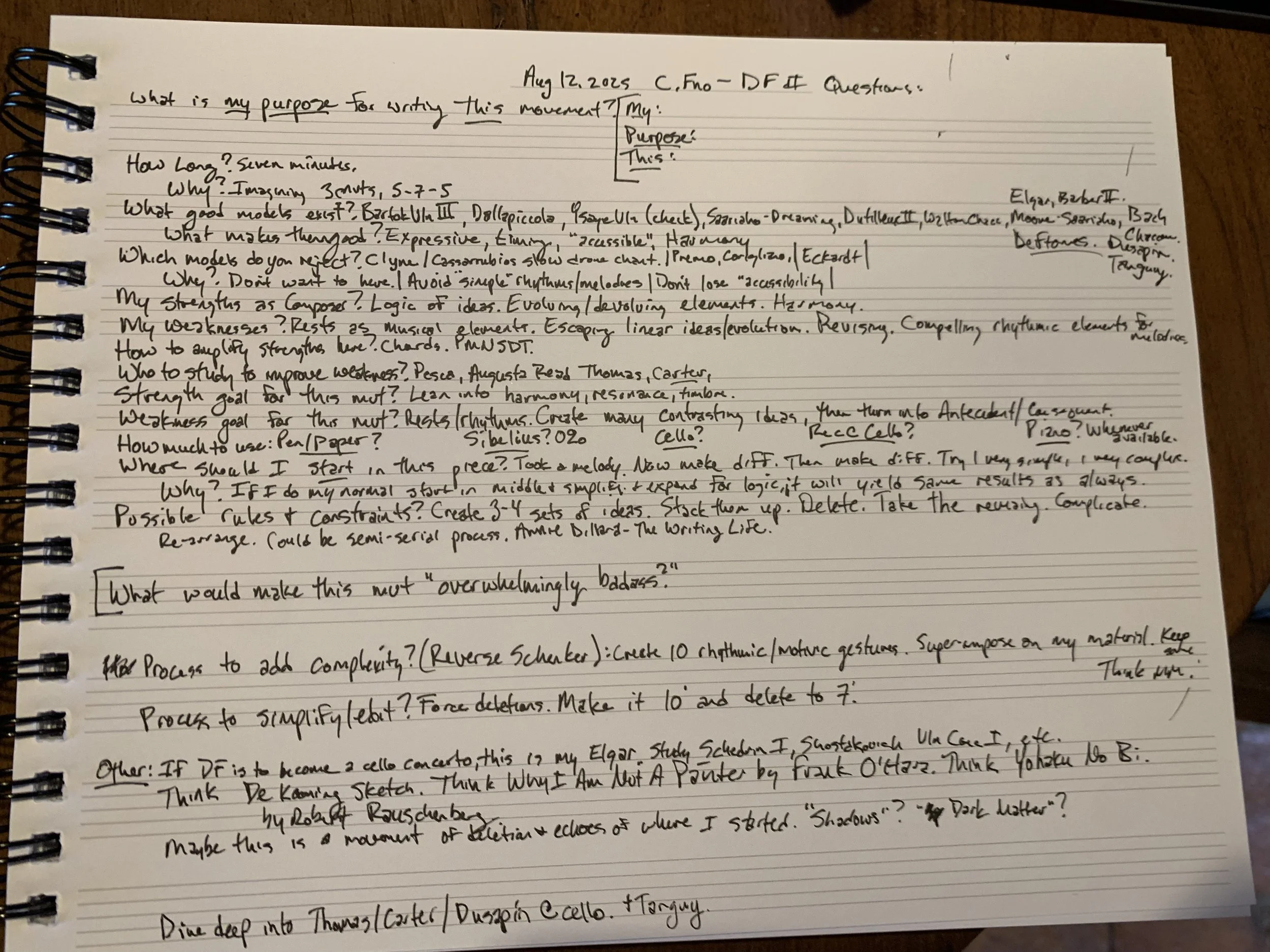 I did some sketching last week and then today wrote a few more pages. I think that this should probably be a solo cello piece, though I sketched orchestral fragments as well. I might use this as the basis of the cello concerto, but I started playing it and realized I’d like to perform it regularly… tough to do when you need a whole orch to back you up
